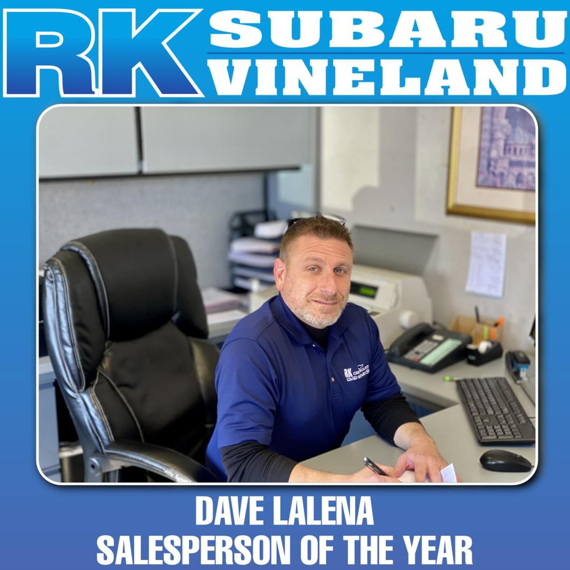 Dave LaLena Salesman of the Year at RK Chevrolet, Kia, and Subaru in Vineland, NJ
